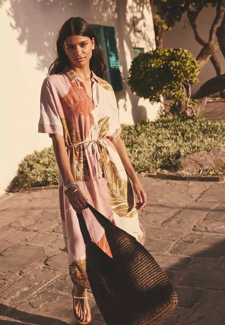 NEXTShort Sleeve Tie Waist Midi Shirt Dress with Linen94.00